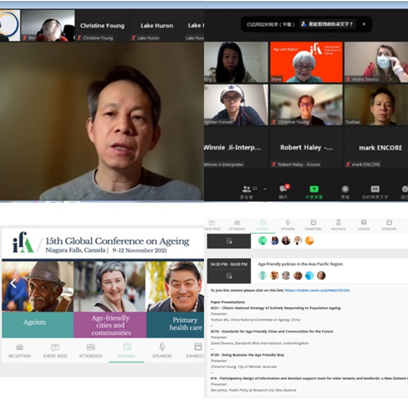 ? 2021年11月11日上午,吴玉韶副会长以视频方式出席了国际老龄联合会第十五届全球老龄大会,并作了题为《中国实施积极应对人口老龄化国家战略》的发言。在发言中,吴玉韶副会长介绍了第七次全国人口普查中有关我国人口老龄化的现状,阐述了中国将“积极应对人口老龄化”上升为国家战略的各项举措,分享了中国在实施“积极应对人口老龄化”国家战略的“中国方案”。