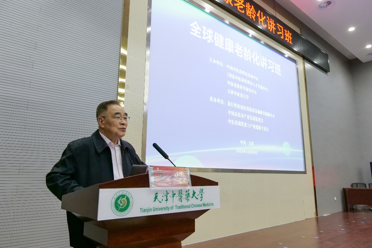 ?? 10 月9 日,中国老龄科学研究中心与中国中医药科技发展中心(国家中医药管理局人才交流中心)、天津中医药大学联合主办的“全球健康老龄化讲习班”在天津中医药大学求真报告厅成功举行。天津中医药大学名誉校长、中国工程院院士、国医大师张伯礼,中国老龄科学研究中心党委书记、主任高成运,中国中医药科技发展中心(国家中医药管理局人才交流中心)副主任刘陆阳,天津中医药大学党委书记刘革生,天津中医药大学副校长王耀刚,天津中医药大学特聘教授胡镜清,天津中医药大学第一附属医院党委书记张艳军,天津中医药大学第二附属医院副院长徐强出席开班式。