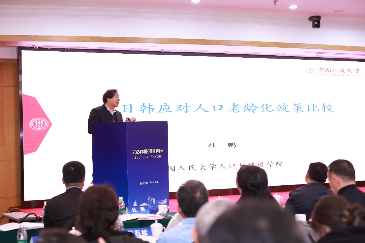 中国人民大学人口与健康学院院长、教授,中国人民大学原副校长杜鹏的发言主题是《中日韩应对人口老龄化政策比较》。杜鹏教授在发言中指出,在人口转变的过程中,中日韩三个国家都迎来了人口的负增长,同时都是处于低生育率水平,在面临的主要挑战方面,共性是人口老龄化在进一步加速,成为世界上人口老龄化最快的地区,同时从劳动力供给上看,三个国家都面临着劳动力逐渐减少。因此,需要从全生命周期的视角积极应对人口老龄化。一是以理念转变引导全社会适应人口新形势。二是推动政策重心从支持生育转向婚育并重。三是着重关注全生命周期的生活质量提升。