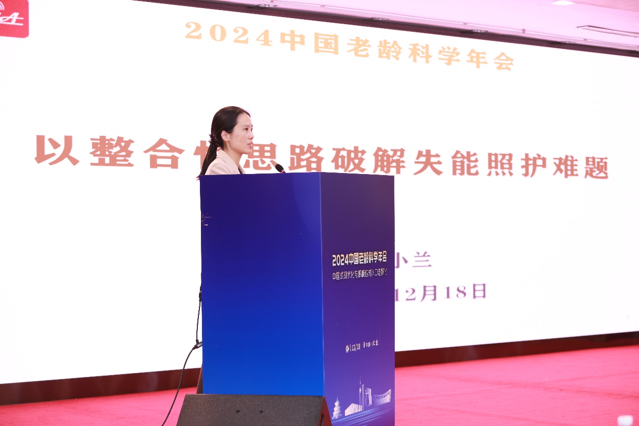 中国老龄科学研究中心老龄健康研究所研究员伍小兰发言的主题是《以整合性思路破解失能照护难题》。她在发言中指出,要坚持问题导向,着力破解当前在失能照护体系建设当中存在的政策碎片化、资源分散化、有效服务供给不足的突出问题和矛盾,要把握战略机遇期,聚焦资金、人力、设施三大基础条件,整合统筹各方力量,来构筑失能照护保障防线,以“毕其功于一役”的方式来全面建立长期照护保障体系,为人口老龄化、高龄化高峰的到来做好准备。